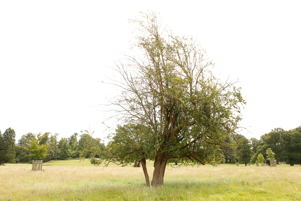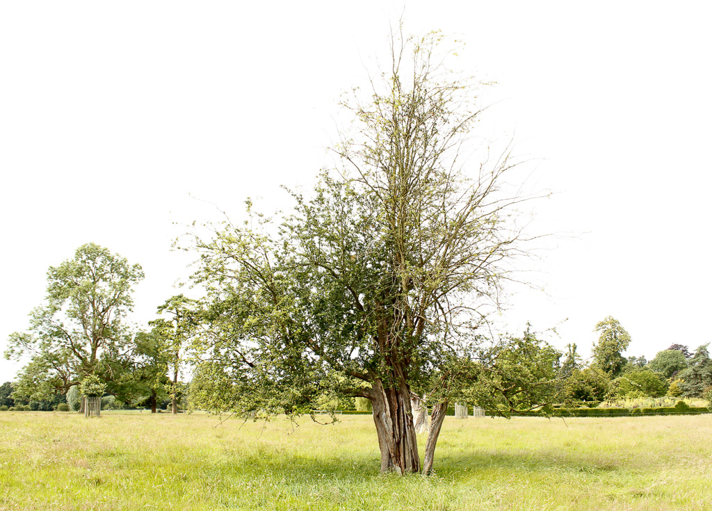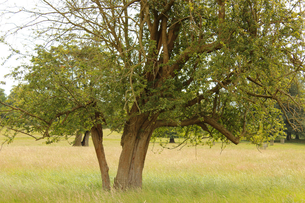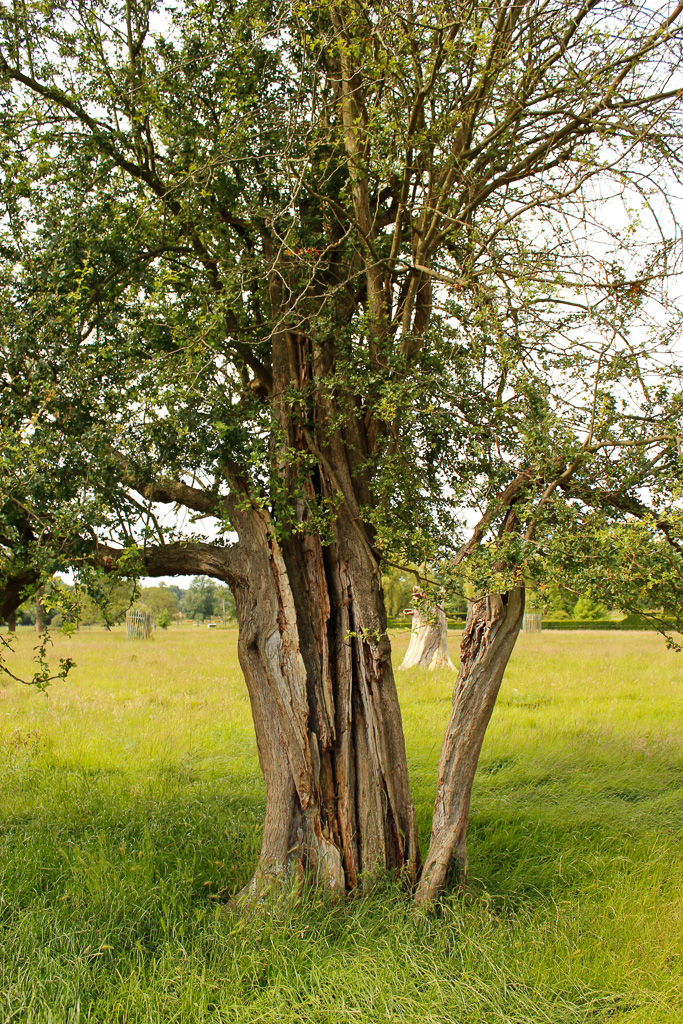 This ancient Hawthorn tree can be found c200m from the eastern side of the large yew hedge that surrounds the house. The trunk has deep fissues and decay, One part of the trunk has split away from the main stem, Although the oldest part of the tree has decay there is much new growth in evidence. Two large branches approximately 2m up the main stem lean to the left of the tree when looking at it towards house. The girth of the main stem is 2.1m, When measured with the part of the stem that has split away, the total girth is 3.2m. the tree leans toward house, It has buttress, visible, roots.