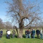 I first saw this tree in April 2012 when on my Heritage Tree surveying workshop. At that time, Jon Stokes who led the workshop and is a renown tree expert in the UK, said that it must be one of the oldest Hawthorns he had ever seen. I have included a photo taken at the time with the people from the workshop.