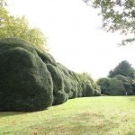 ‘The Cloud Yew Hedge’. This is one of a number of very large yew hedges in Doddington Place and is situated in the garden. Head Gardner Lucy Adams told me that the yew hedge originally was clipped back but with the outbreak of war, the gardners joined the services and the hedge became overgrown. However, the owner, Mrs Douglas Jeffreys, liked the look of the overgrown hedge and it has remained in this shape with only maintenance trimming ever since. There are approximately 110 yew trees in the hedge. It is possible to walk inside the hedge. Mrs. Douglas Jeffreys (nee Oldfield) was responsible for much of the architectural detail and layout of the heart of the garden. She lived in the house from 1906 until her death in 1954.