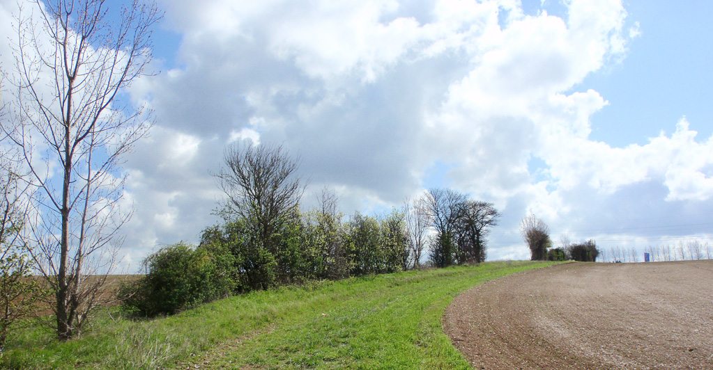 This hedge/tree line on a bank is the ancient ecclesiastical boundary between Eynsford and Lullingstane (now Lullingstone). The field maple pollard is marked on the 1802 estate map of Lullingstone Castle.