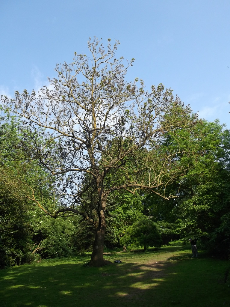 Tall Foxglove tree, with lots of old seed cases and dead wood, one lower branch removed and a number of others.