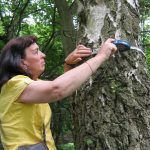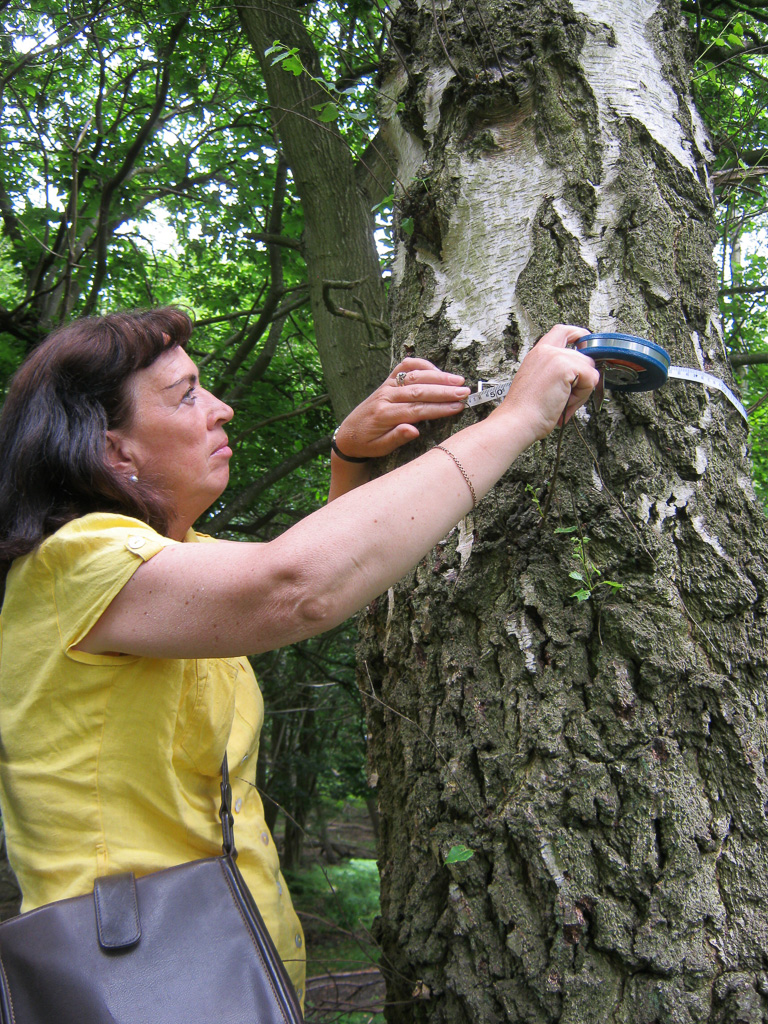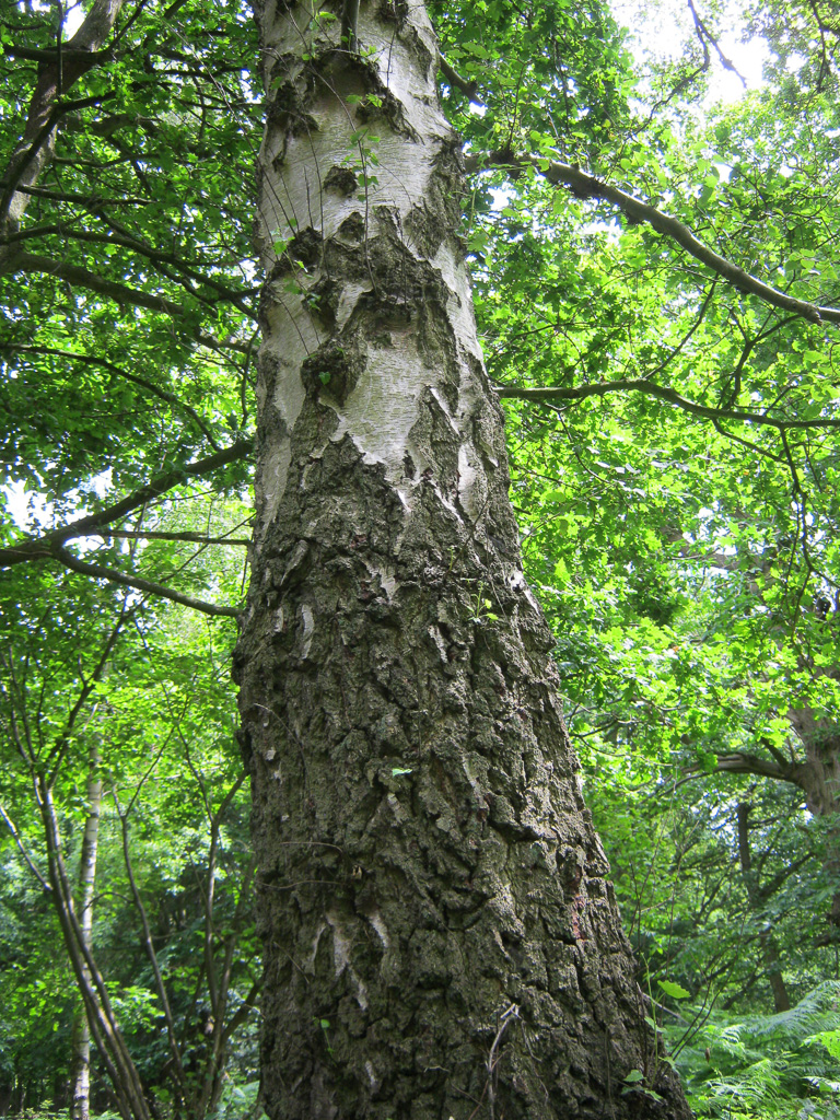 Birch at the left hand side of the path leading from the main car entrance of the car park. One of many on the site, a proportion of which qualify as a veteran tree.