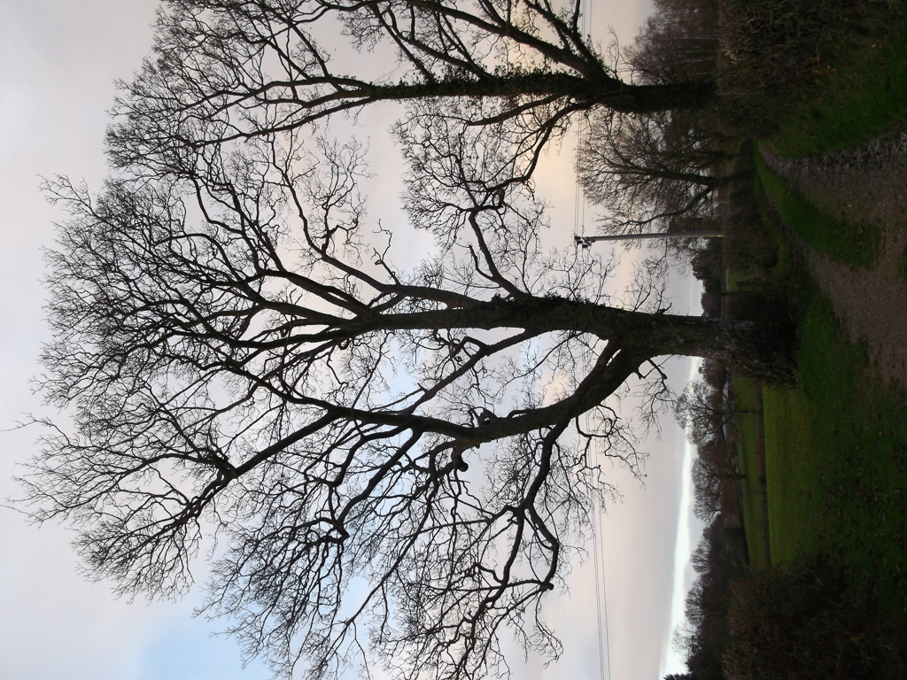 Tree is in hedgerow between stile and gate on west side of track.Bark fissured and flaking, and in one place missing (machinery damage?). Trunk slightly indented, forks at 2.5m.